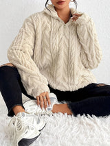 Fique aquecido, macio e estiloso com o Suéter Aila Fluffy com Zíper – sua camada ideal para dias frios e noites aconchegantes. Feito de flanela ultra macia com um design relaxado com capuz, o Aila possui um zíper frontal para facilitar o uso e um caimento solto perfeito para sobreposição ou para relaxar.
