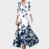 Vestido Longo Floral com Decote em V