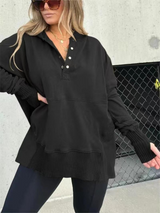 Diga olá ao conforto o dia todo com o Moletom Maggie Flowy First Class. Projetado com um caimento relaxado e detalhes em patchwork de linhas, este moletom traz um estilo descomplicado para seu guarda-roupa casual. O tecido macio e respirável cai lindamente, tornando-o uma escolha perfeita para sobreposição, descanso ou para sair com confiança casual.